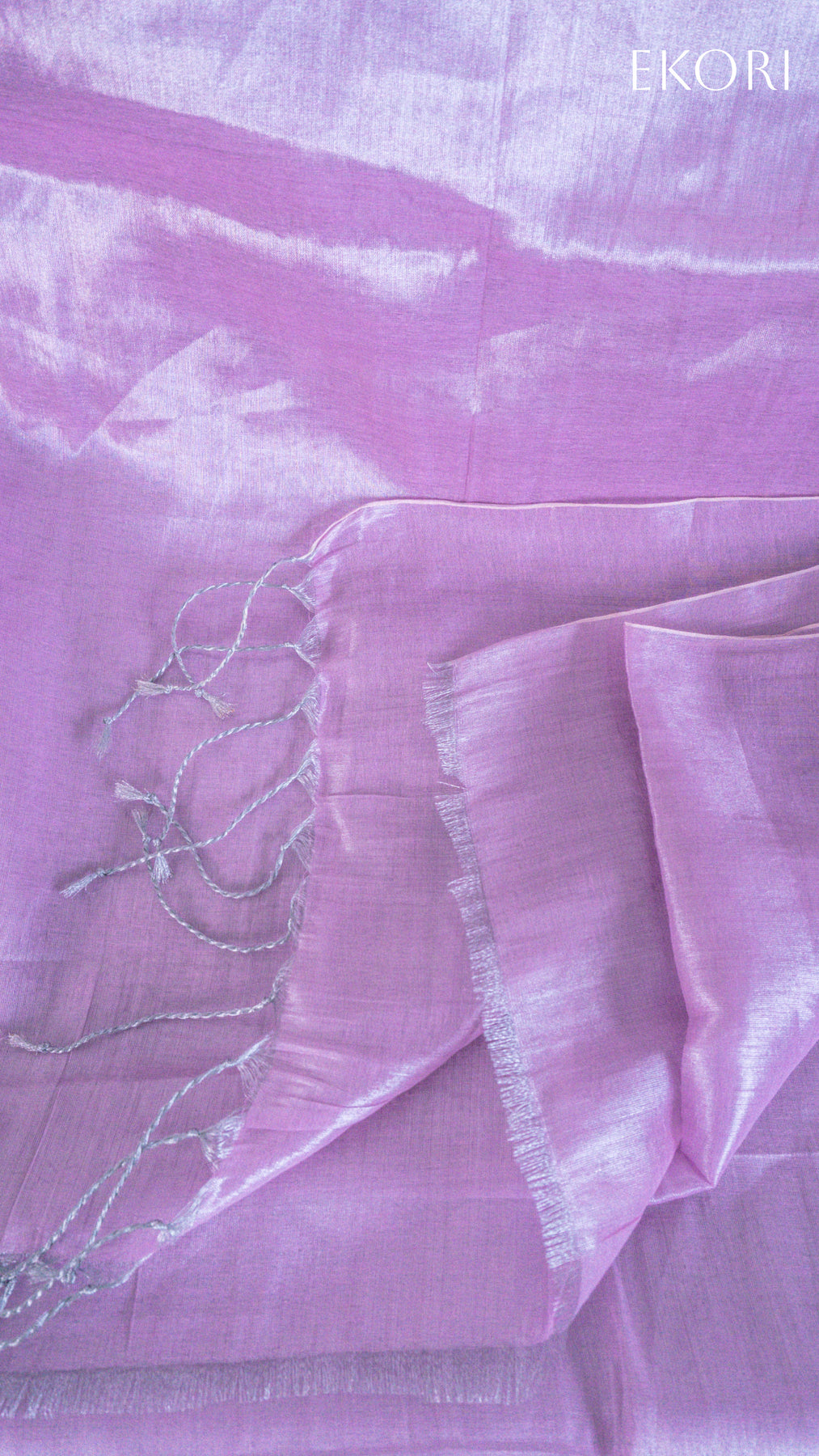 In the world of elegance, the lilac rose tissue saree stands as a masterpiece from handloom artisans. Its soft shine reflects a perfect blend of royalty and modernity, draped gracefully to enchant on special occasions. Each thread tells a tale of craftsmanship, blending tradition with contemporary allure effortlessly. This saree embodies poise and charm, capturing hearts with its subtle shimmer and timeless appeal, ensuring it remains a cherished choice for every memorable celebration.