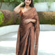 Draped in the Taamra Tara Tissue Saree, she glowed with a radiant warmth. The copper-toned fabric, interwoven with delicate gold threads, shimmered softly with every step. The rich, earthy hue reflected both elegance and strength, while the intricate patterns added a layer of sophistication. The saree embodied timeless beauty, exuding both grace and understated opulence.