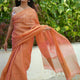 She wore the Kanak Gulabi tissue linen saree, a perfect fusion of warmth and elegance. The soft golden base, infused with subtle pink accents, shimmered gently in the light. Handcrafted by skilled artisans, each delicate thread wove a story of tradition and meticulous craftsmanship. The saree’s graceful flow and radiant hues captured a timeless beauty, offering a perfect blend of grace and charm.
