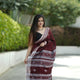 Maroon and White Mecarised Cotton Saree with Stripes and Tassels