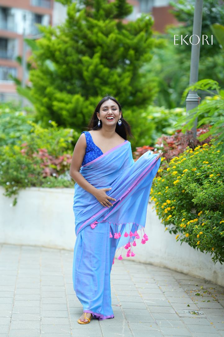 Mulmul cotton, with its delicate weave and rich history, traces back to ancient India. Named after the city of Multan, it flourished during the Mughal era, prized for its luxurious texture and breathability. From the courts of emperors to the humble homes of artisans, mulmul cotton was revered for its versatility and comfort. In the realm of sarees, mulmul cotton reigns supreme. Crafted with meticulous care, these sarees embody elegance and grace. The fabric's airy texture drapes effortlessly, embracing the wearer like a gentle breeze. Its heavenly softness whispers against the skin, offering unparalleled comfort. The process of creating mulmul cotton sarees involves skilled artisans, who hand-weave each thread with precision. Through traditional techniques passed down through generations, they transform raw cotton into ethereal fabric, worthy of adorning queens. When draped, mulmul cotton sarees exude an aura of sophistication. Their lightweight feel and fluid drape make them perfect for any occasion, whether a casual day out or a grand celebration. As the soft fabric cascades, it envelops the wearer in a cocoon of serenity, a testament to the timeless beauty of Indian craftsmanship.