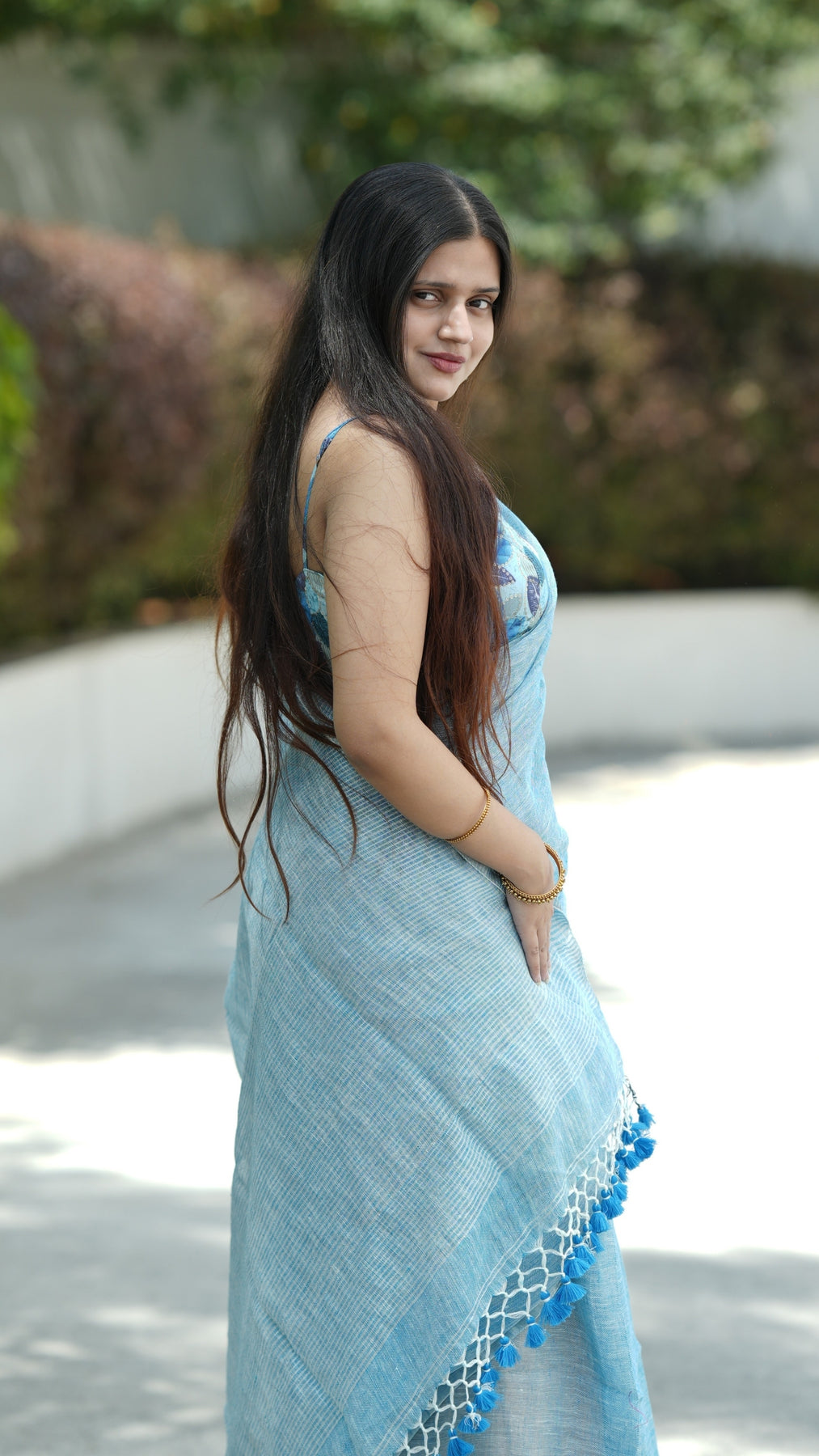 Wash Care: Hand-wash linen sarees separately in mild detergent and soft water. Dry flat to maintain softness and drape. Avoid wringing.